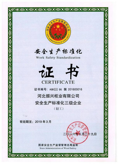 安全生產(chǎn)標(biāo)準(zhǔn)化證書