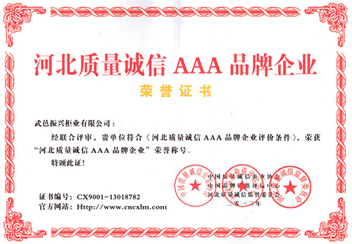 河北質(zhì)量誠信AAA品牌企業(yè)