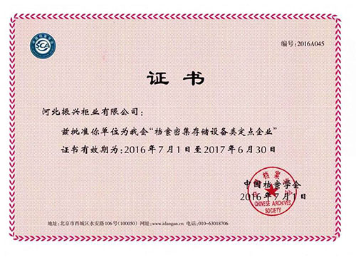 中國檔案學(xué)會檔案密集存儲設(shè)備類定點企業(yè)