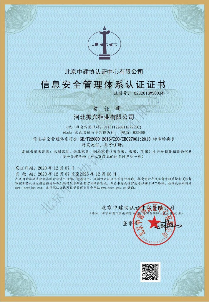 信息安全管理體系認(rèn)證證書
